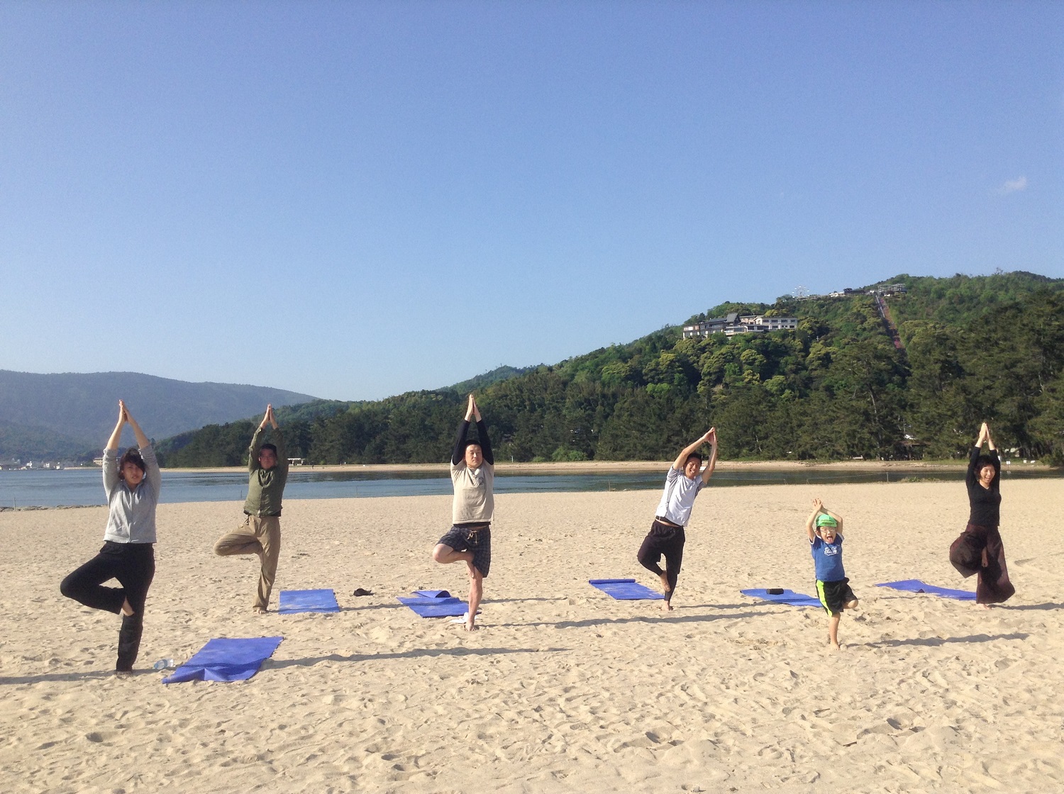 - 天橋立の中でも一番広いビーチ部分でヨガします。