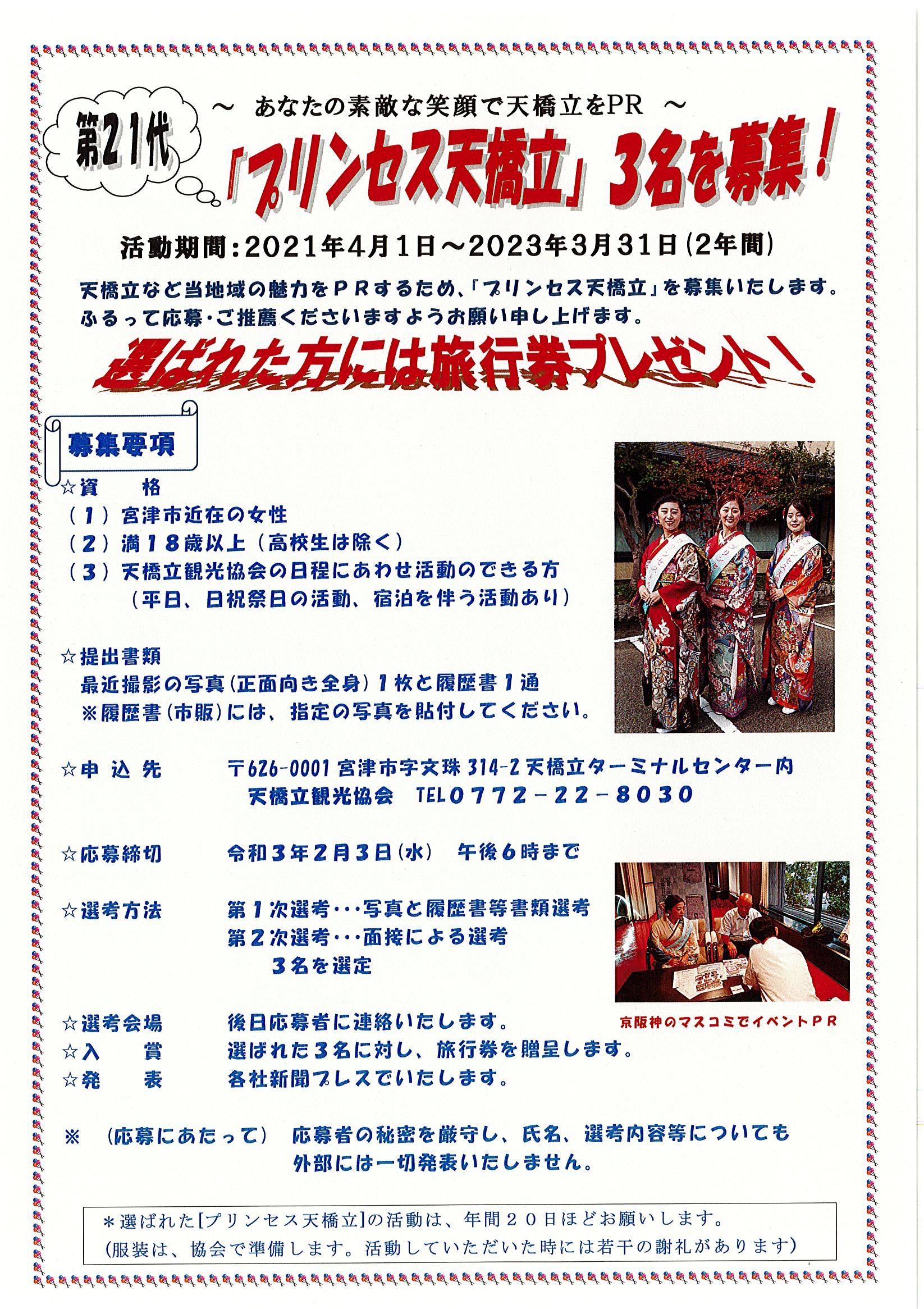 第21代「プリンセス天橋立」を募集!