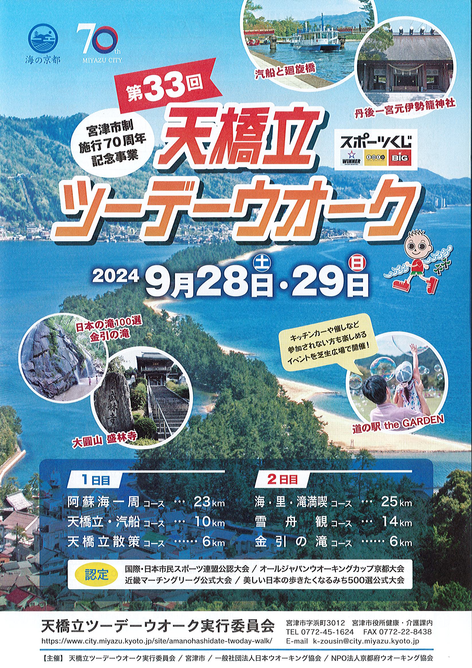 詳細は、こちら → 第33回天橋立ツーデーウオーク(2024年) – 宮津市ホームページ (city.miyazu.kyoto.jp)