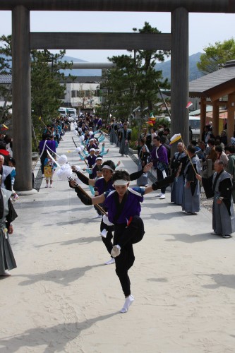 その道中や祭礼の前後に繰り広げられる「太刀振り(たちふり)」や「神楽」の芸能の数々が大きな見どころ!
