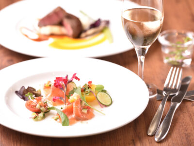 丹後の旬の魚介をメインに自家栽培の野菜とハーブを使い軽く仕上げた創作フランス料理。ランチは人気のビス…
