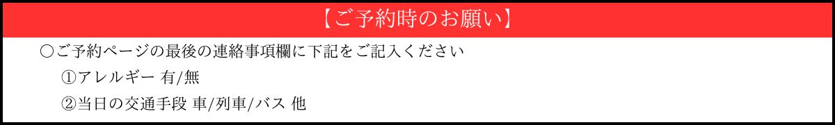 | 注意事項 | □運転される方は、飲酒をご遠慮下さい。 | ||||