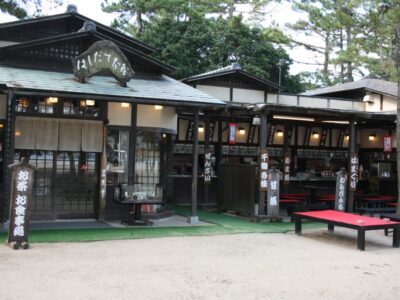 元伊勢籠神社から傘松公園ケーブルカーまでの参道沿いにある古民家風の外観が特徴のお食事処。 天橋立が眺…