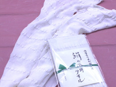 この商品は当地の地場産業丹後ちりめんの着物の生地を使った浴用タオルです。丹後ちりめんは蚕から糸を取りだし一本一本つなぎ合わせ、よりをかけ最後に熱湯につけてさらによりをかけて糸一本一本を作り上げたおりものです。最初はつるつるしていますが水につけてぬらすと表面がざらざらになり、体を洗うと角質が落ち大変気持ち良いです。是非一度お試しください。