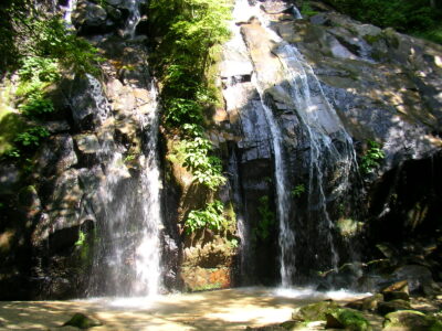 日本の滝100選の一つ「金引の滝」は高さ約40メートル、幅約20メートルで、一年中豊かな水量を誇る美…