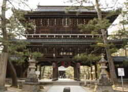 茶屋通りに面する山門は、黄金閣とも呼ばれる市の指定文化財で、楼上に釈迦如来を中央に両脇士・十六羅漢を安置する、禅宗様式・三間三戸二重門の丹後地方最大の山門です。