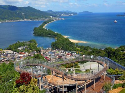 文珠山山上にあり、天橋立を南側から一望できる展望所です。 ここから「股のぞき」した時の眺めは、天橋立…