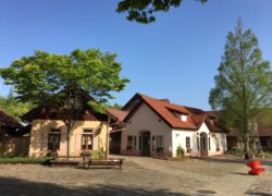 雄大な自然に囲まれた敷地内では、ゆっくりとくつろげる芝生広場、ヒツジやヤギ、大きなリクガメなどに触れあえる「小さな動物園」、お子様に大人気の芝すべり、アスレチック広場、ブルーベリーやサツマイモの収穫体験、森林散策などいろいろな楽しみ方ができます。