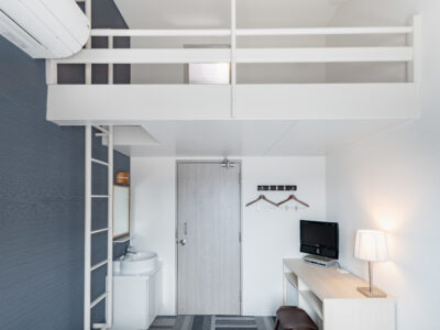 シャワーユニット・トイレ付ダブルR(9室)、シャワーユニット・トイレなしシングルR(8室)、シャワーユニット・トイレなしトリプルR(17室)