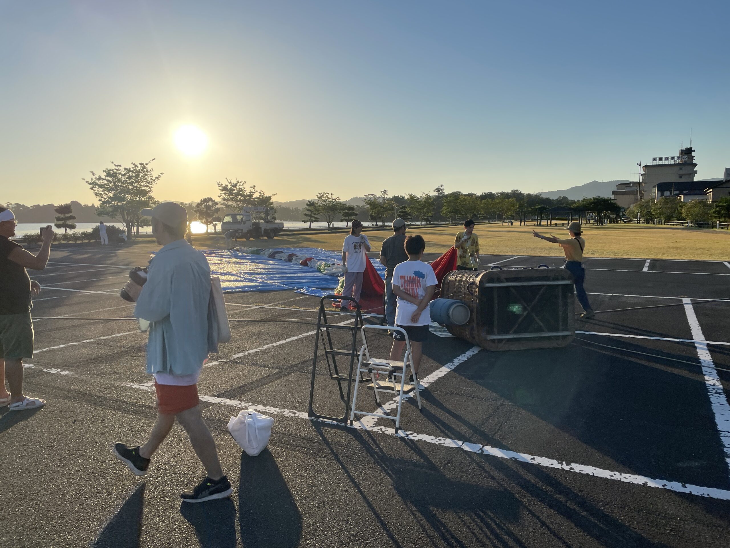 熱気球の飛行は、風のない、早朝か夕方に行われます。