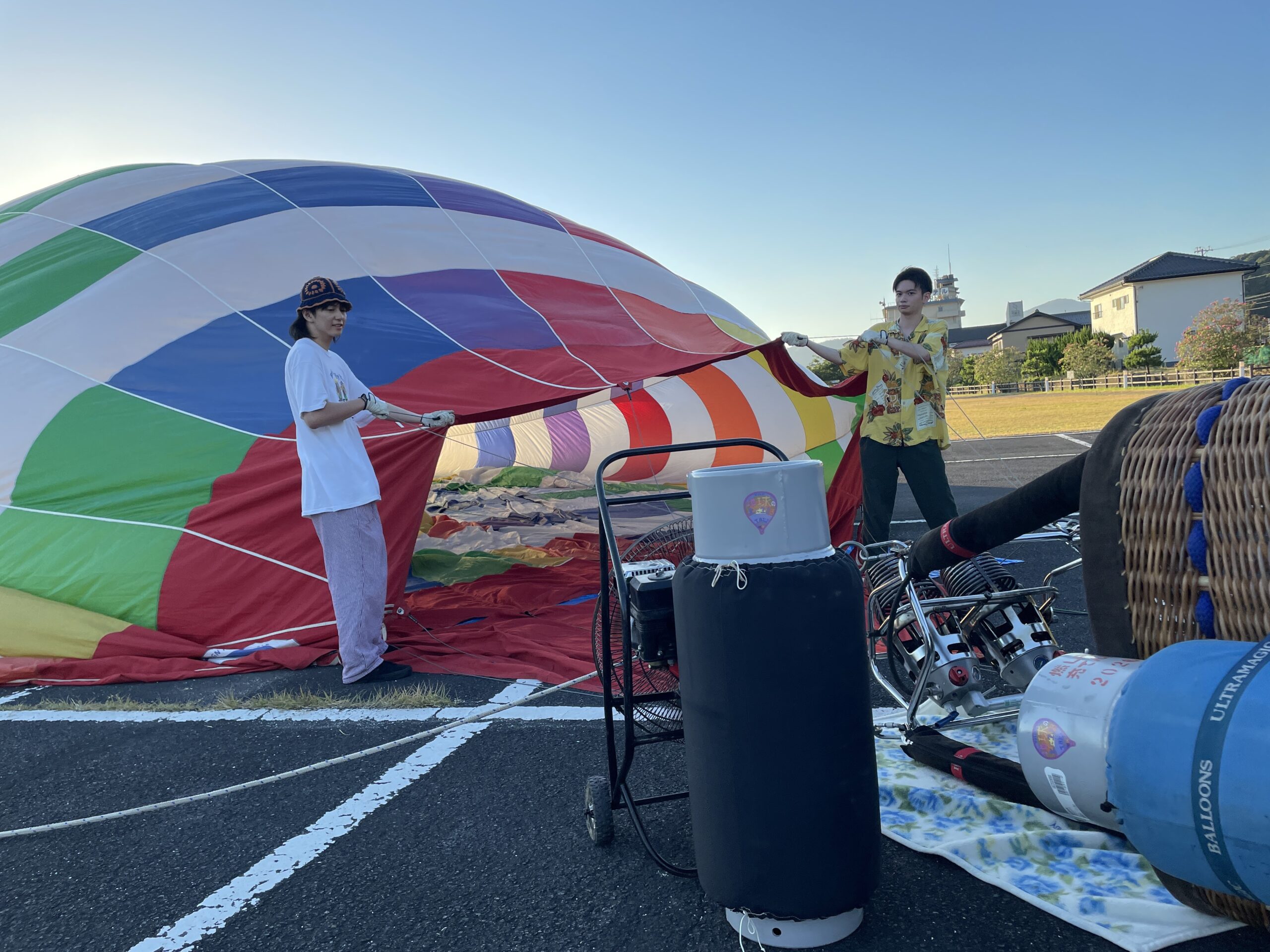 熱気球の歴史と仕組みを知り、みんなで熱気球を立ち上げ、ロープで繋がれた熱気球に乗って、およそ20~25mまで浮上する体験です。