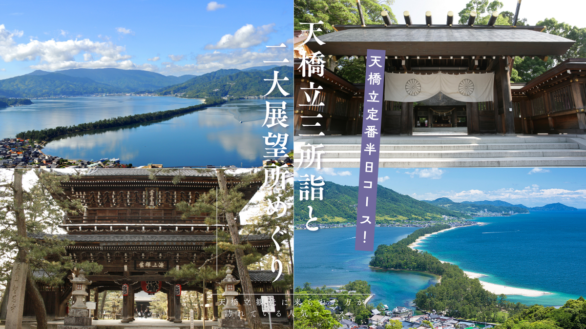 龍にたとえられる「天橋立」を二大展望所からご鑑賞いただいたり、天橋立の魅力を最大限に盛り込んだコース内容となっています。