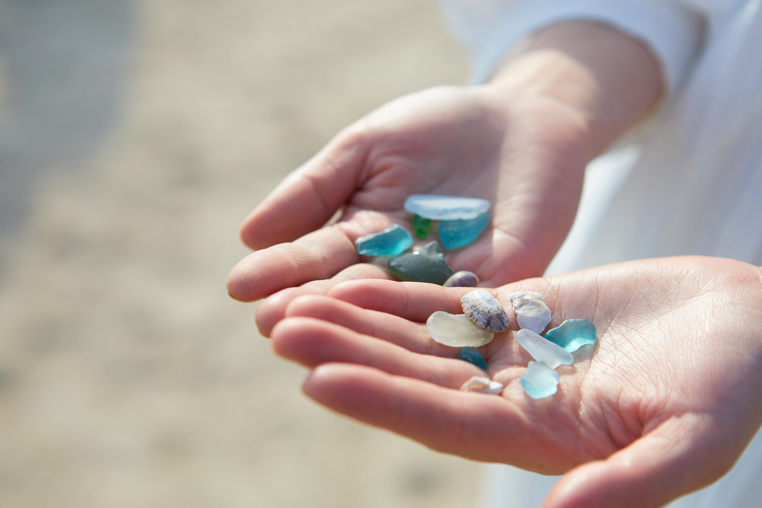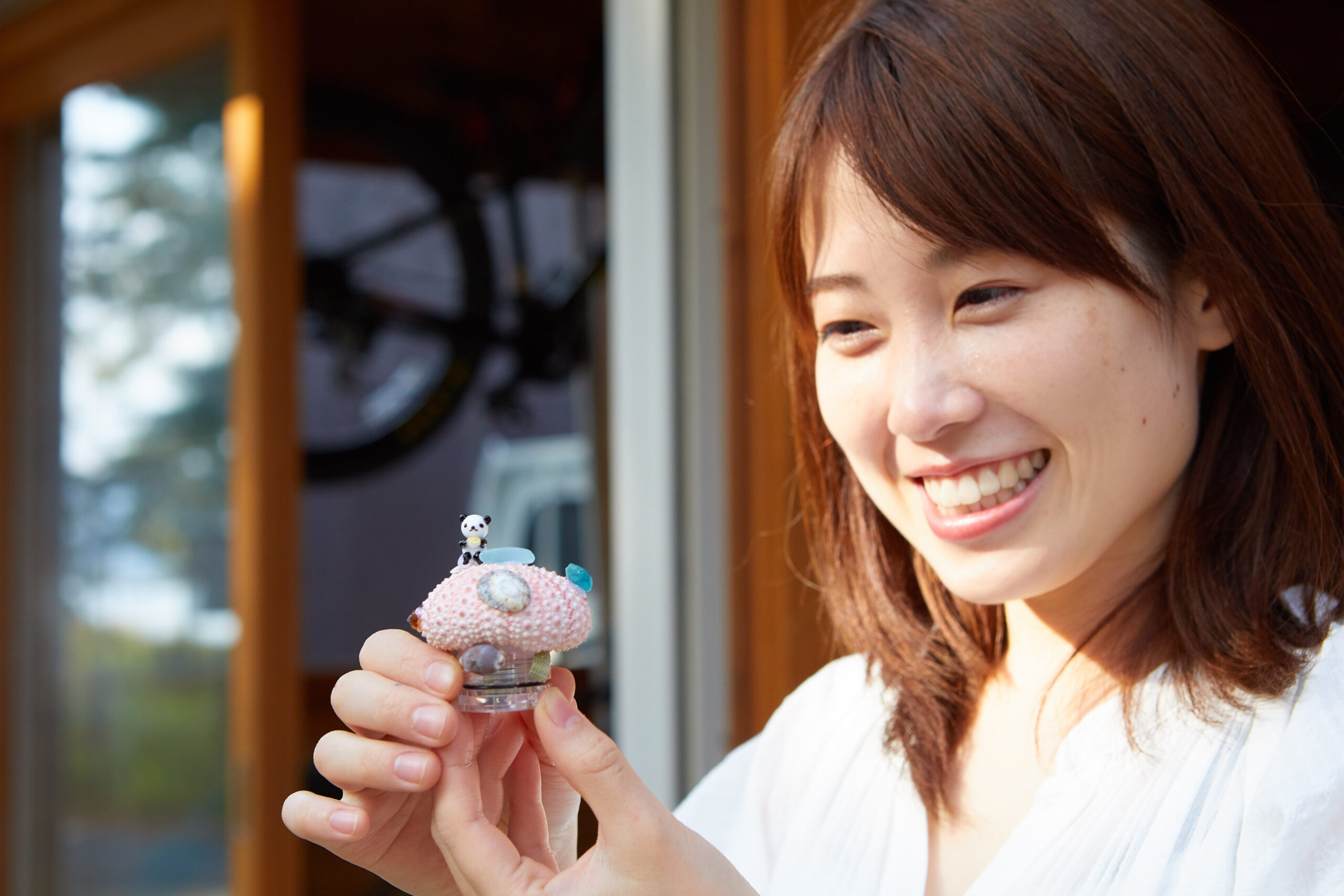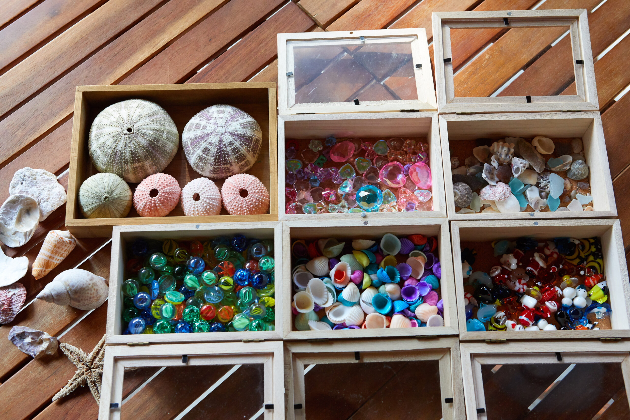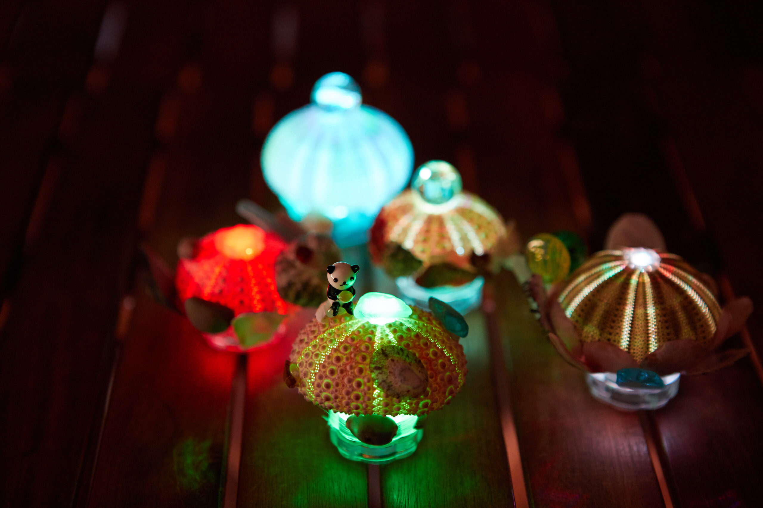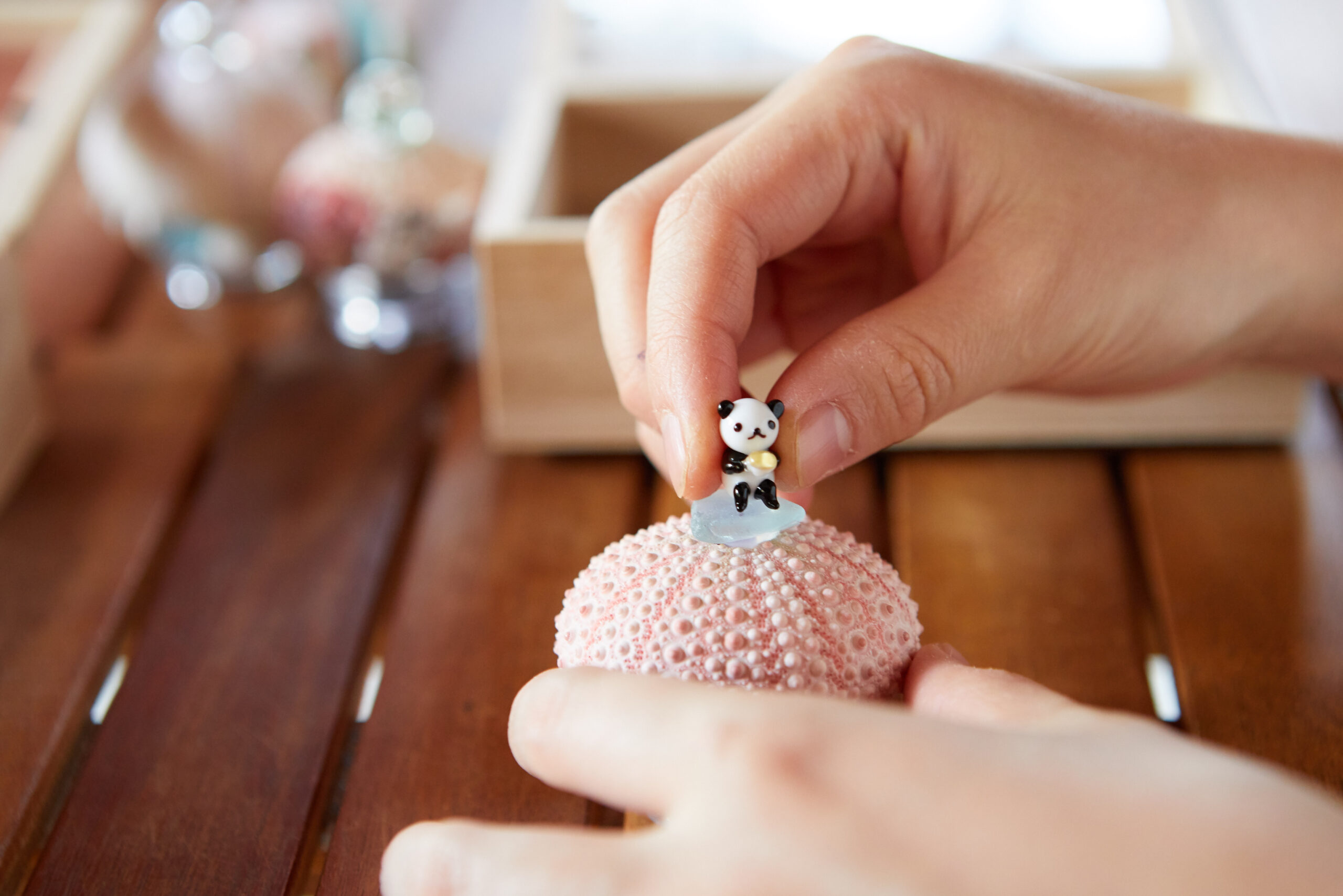 日本三景天橋立で拾った貝殻やシーグラスを使ってウニランプ作り。